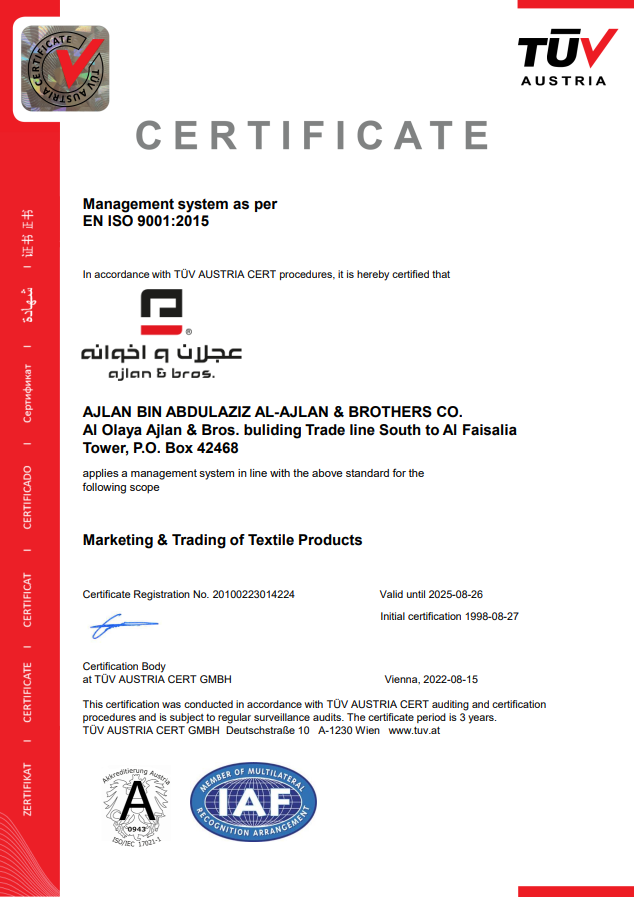 Ajlan & Bros developed from a small shop in "Al-Deira" in Riyadh, into a dynamic company capable of delivering its products to many countries around the world. Four brothers Ajlan, Saad, Muhammad and Fahad founded the group in 1979, turning it into one of the most famous Saudi companies in the line of textile and fabric.